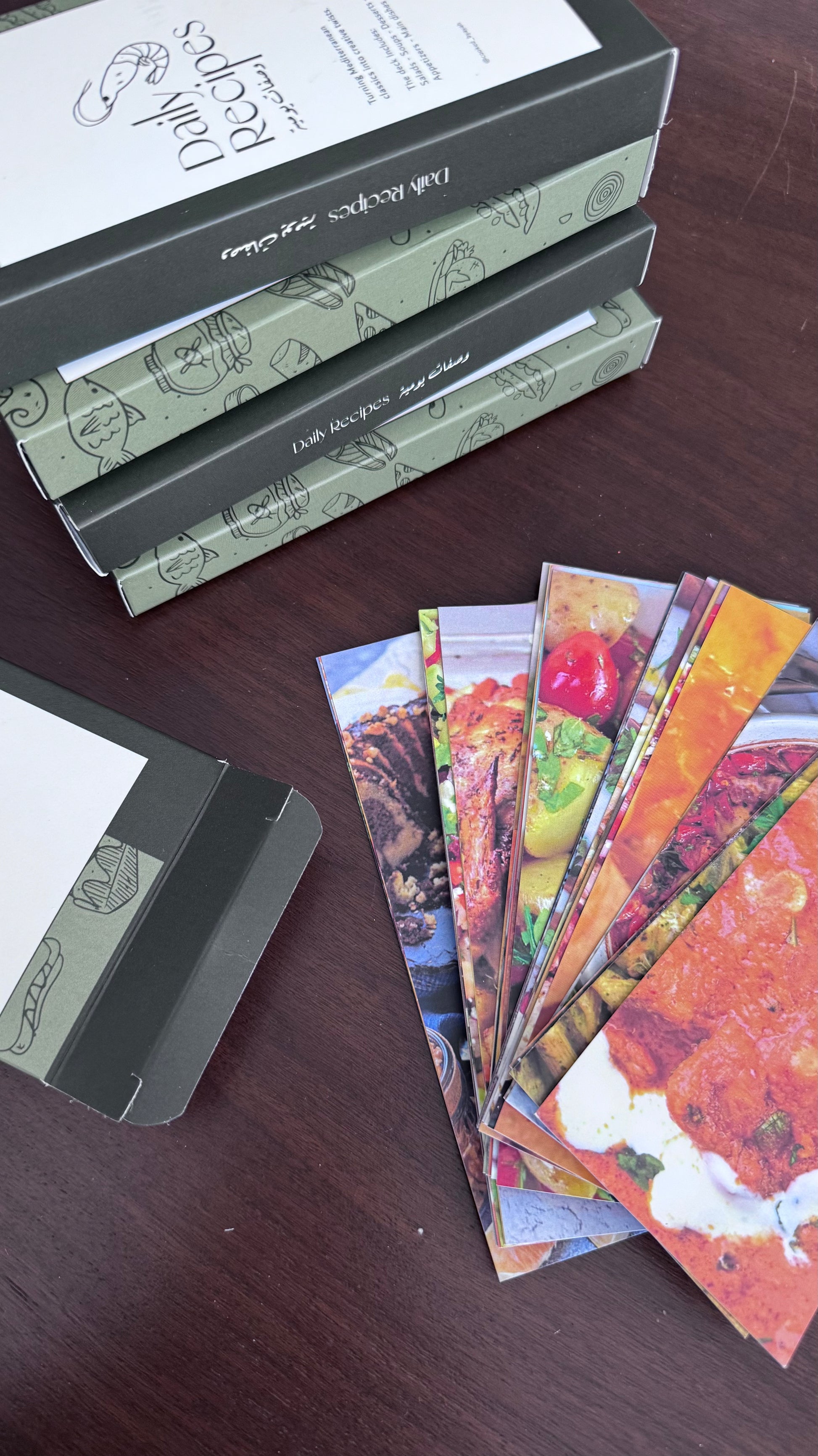 Celebrate Ramadan with ease using this deck of 30 delicious recipes—one for each day of the month. Featuring a variety of appetizers, main dishes, and desserts, the deck offers a balanced mix of chicken, beef, and fish, ensuring exciting and flavorful meals for every Iftar. Each card provides a simple, step-by-step recipe, making meal planning effortless and saving you time. From crispy starters to hearty mains and sweet treats, this deck helps you enjoy a stress-free, delicious Ramadan with diverse dishes for the whole family.