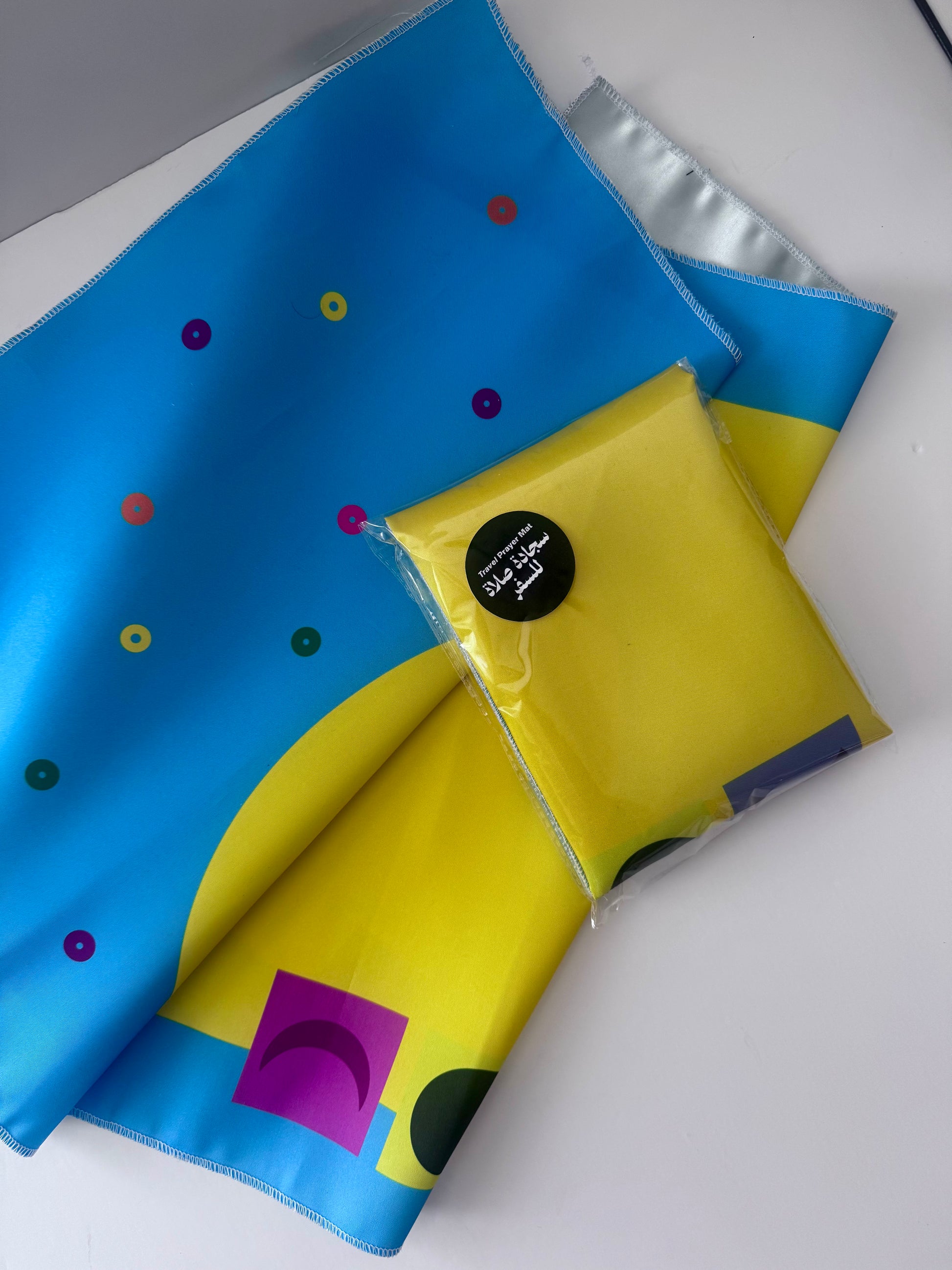 A vibrant, kid-friendly travel prayer mat, designed for on-the-go convenience. Lightweight and compact, it’s perfect for young ones to take with them wherever they go, bringing a burst of color and joy to their prayers.